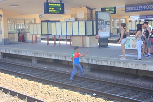 Brussels-North train station. A little child accidently dropped the ball